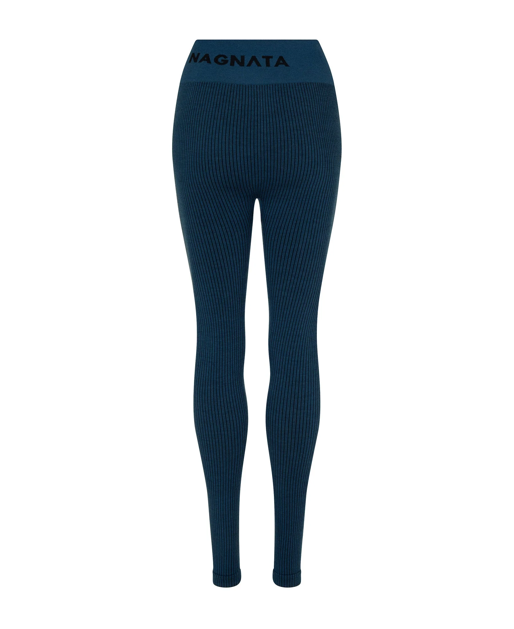Superfine Merino wool seamless knit high-waisted rib legging. This features corsetry inspired design lines that shape from the waist for an elongating leg. Designed with a specially constructed wide waistband at 9cm, the Demi Wool Legging offers additional body sculpting. Made in our signature seamless fabrication providing mild compression, support and breathability with a super-soft second-skin feel against the body. The style features a contrast Nagnata logo on the back waistband.