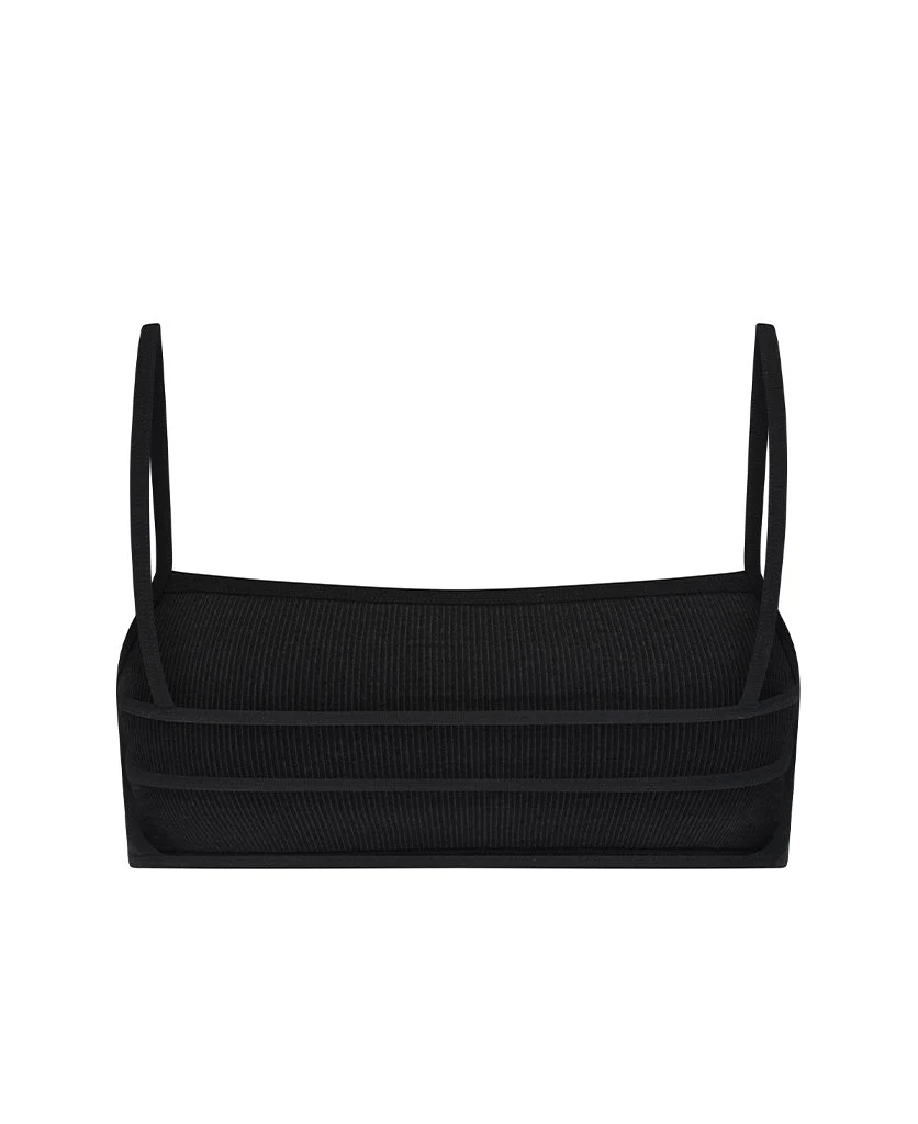 Merino wool seamless square-neck bralet in our signature two-tone rib facrication featuring strappy back design details. Fully lined, this superfine Merino wool style offers mild compression for support and breathability and features a fabric bind underbust.