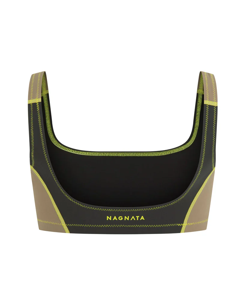 The Sundown Bralet is part of Nagnata’s first Swim Surf Sport capsule, an evolution of the Movement wear collections where function meets fashion. The scoop bralet is a play on Nagnata’s signature colour block styles with contrast colour flatlock seams true to its sports-meet-fashion aesthetic. Made from a specialised GRS certified Italian recycled bonded fabric that offers durability and support to take you from studio to surf. All swim surf styles feature new branding with a retro sun-inspired logo, a fresh take on the original Nagnata mandala.